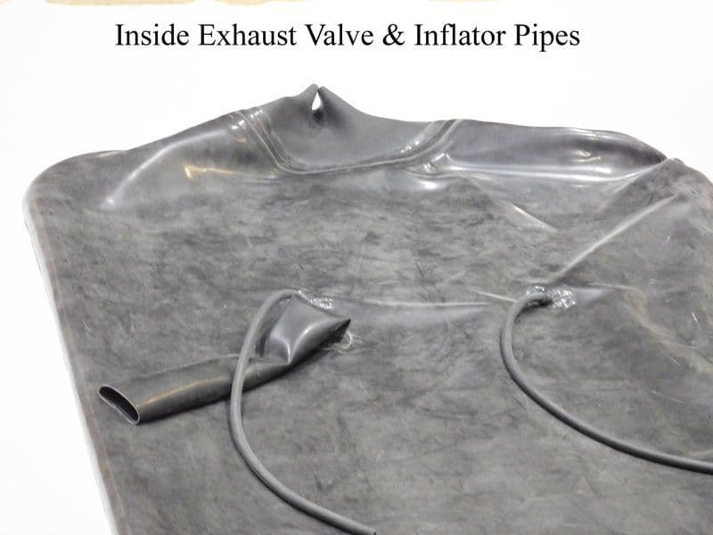 Inside the sack, two hand pumps with twist or push release valves, as well as a large exhaust pipe, provide the means for inflation.